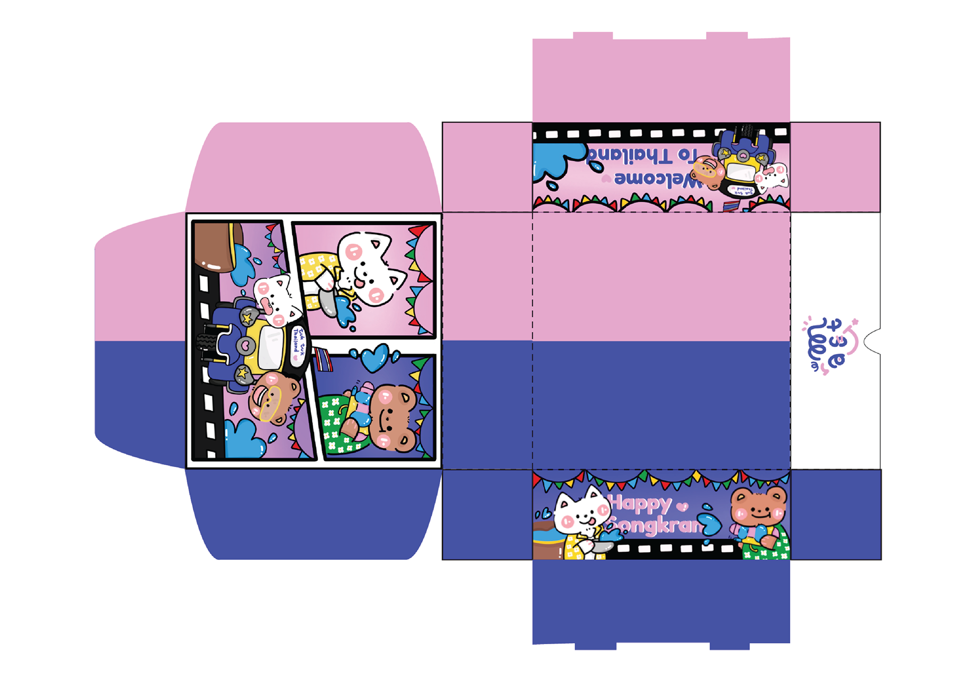 , playing in the Songkran water festival. The design is fun and lively, perfect for